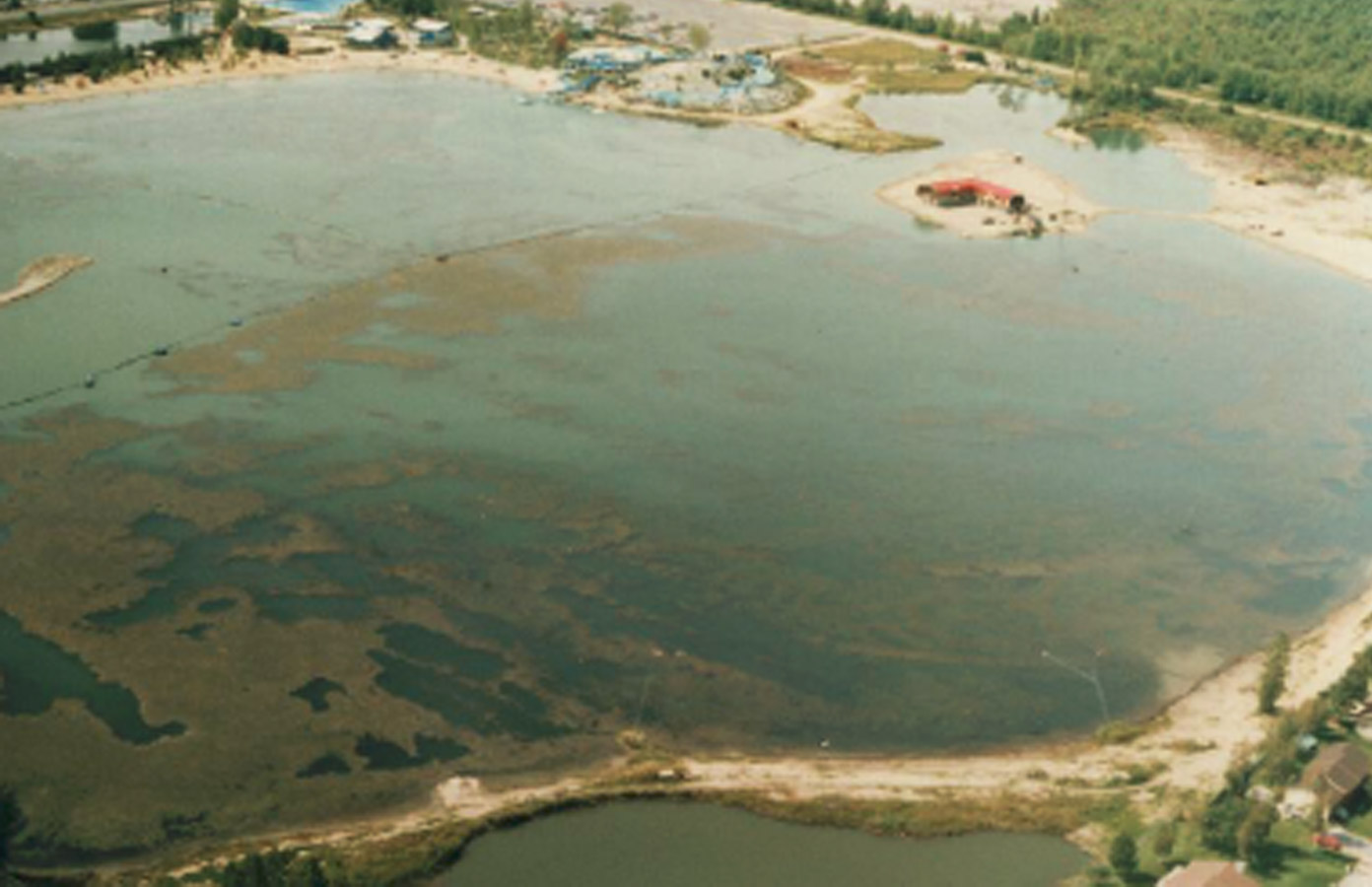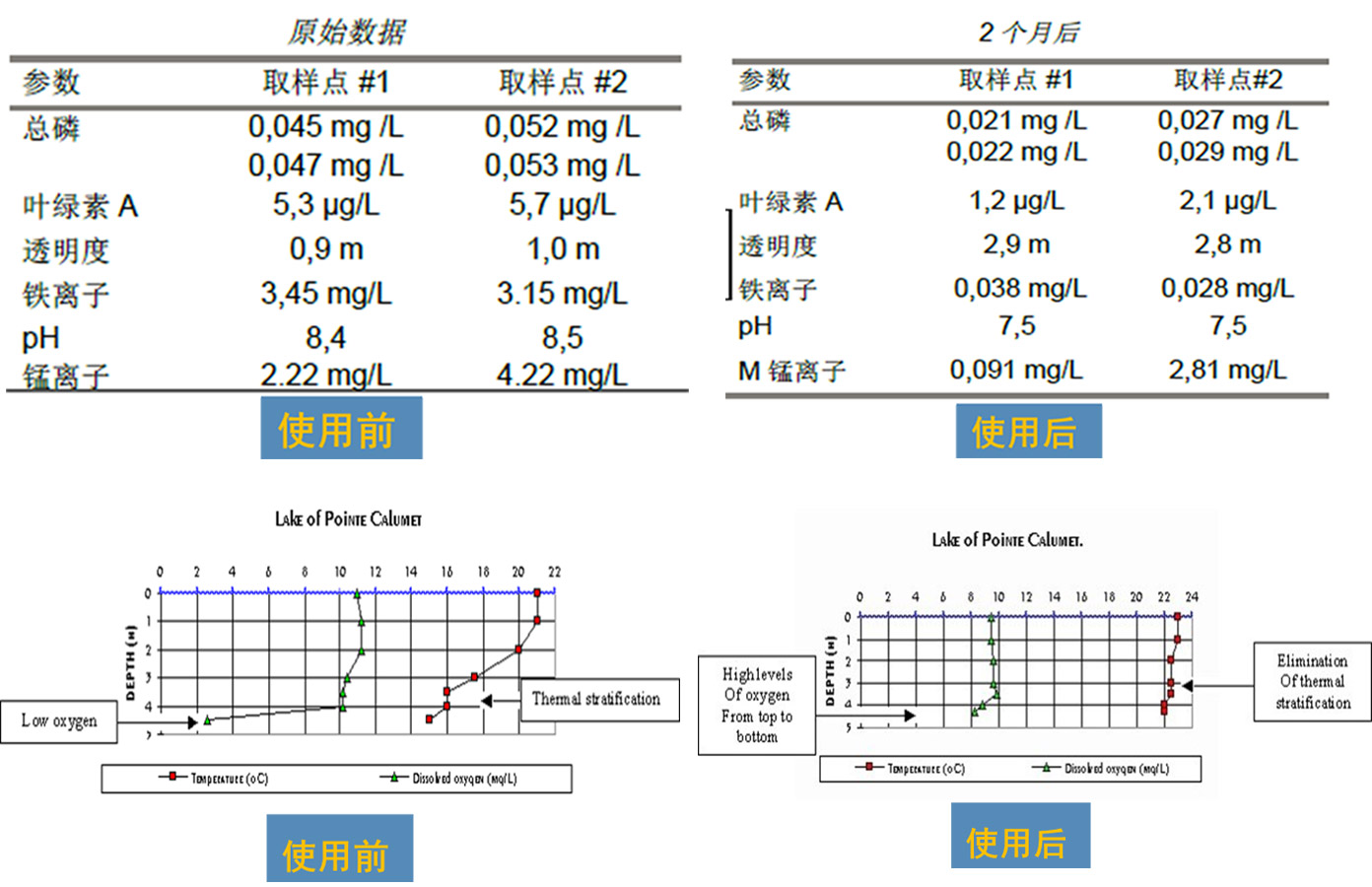 卡爾利梅湖位于加拿大魁北克省,水體面積22公頃,最大水深4.5米,平均水深3米。水體富營養(yǎng)化嚴(yán)重,藍(lán)藻爆發(fā),水體透明度低,歐亞水蓍草大量繁殖(每年需收割3-5次),鐵錳離子超標(biāo),硫化氫超標(biāo),水生植物種群數(shù)量少。